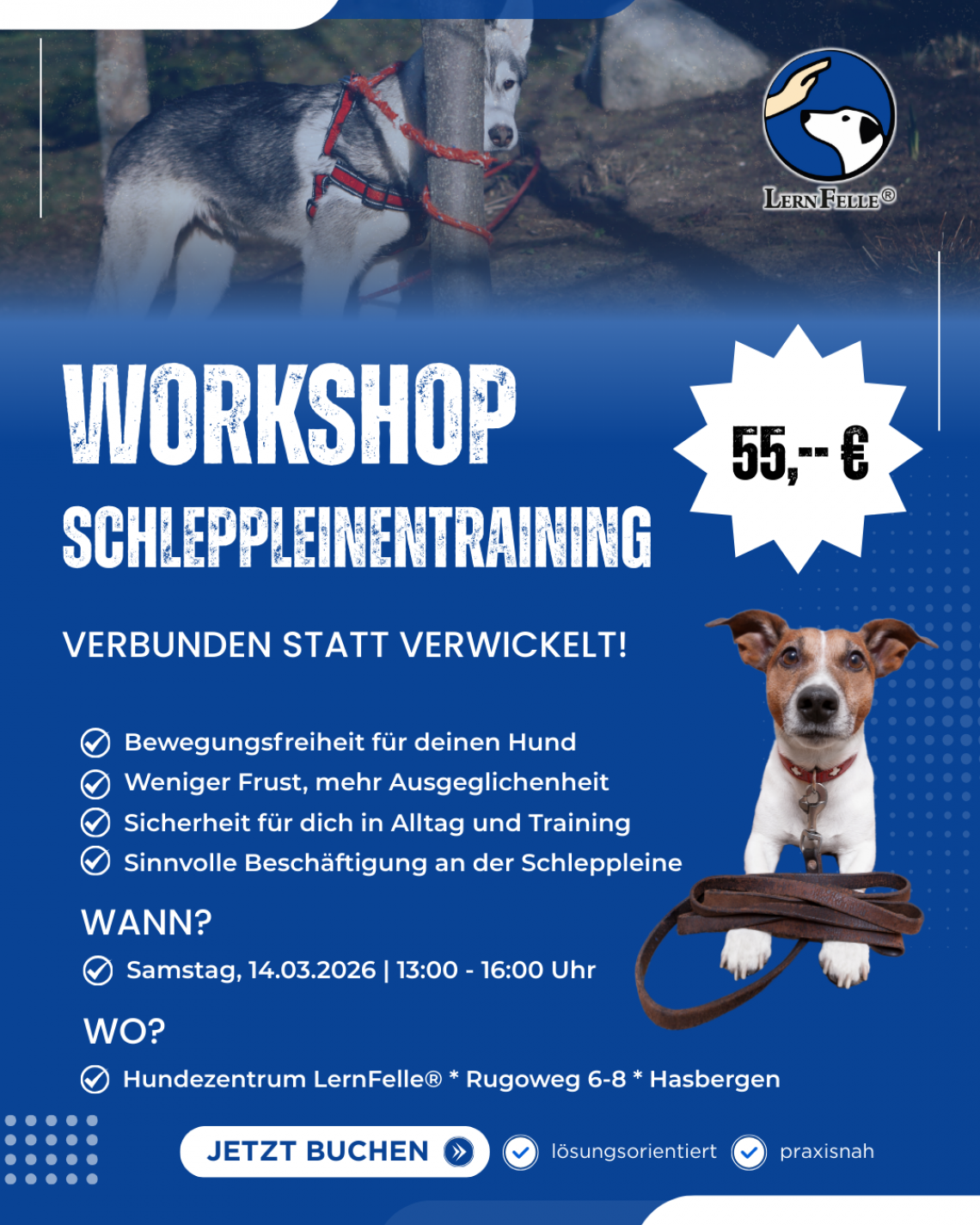 Ein kompakter Einsteigerworkshop, der dir zeigt, wie faszinierend Nasenarbeit wirklich ist. Praxisnah, klar angeleitet und die Voraussetzung für unser reguläres Mantrail-Training. Perfekt für alle, die erleben wollen, wie stark ein Mensch-Hund-Team werden kann, wenn der Hund das tut, was er am besten kann: suchen.
